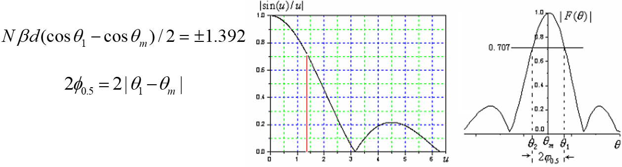 若方向图主瓣窄sinφ0.5≈ φ0.5,并取L=Nd,则得