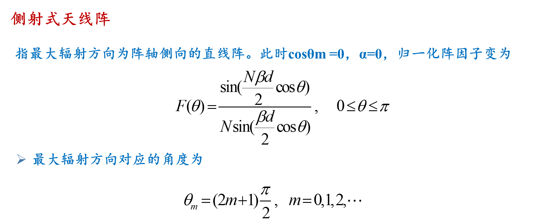 对于侧射阵,θm=π/2,cosθ0n=nλ/(Nd) 。
