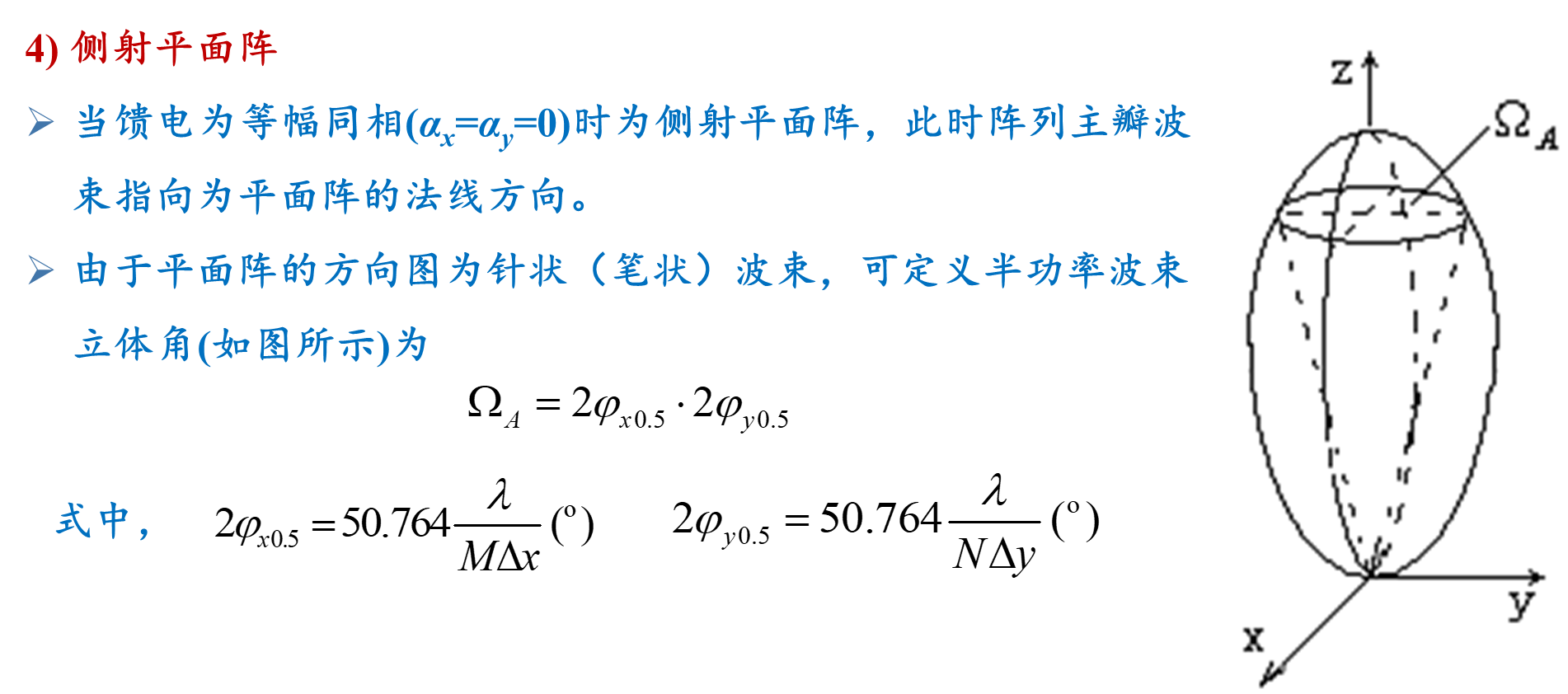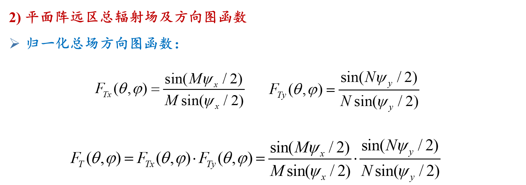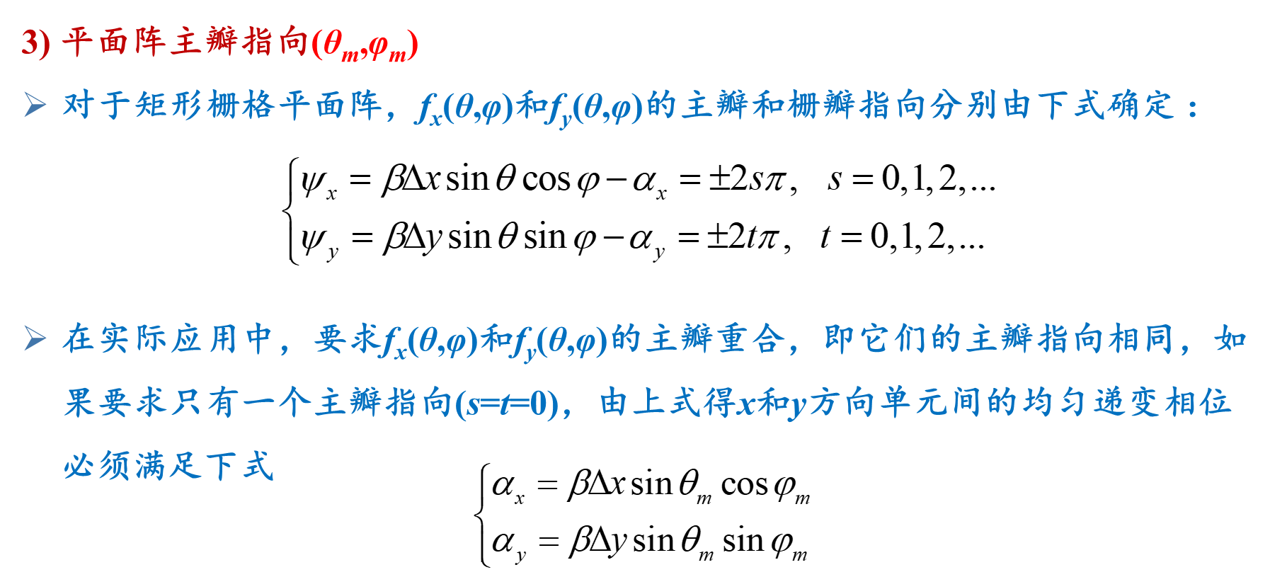阵列中各天线单元类型相同,尺寸相同,馈电幅度相等,相位按行和列为均匀递变αx、αy,天线单元间距分别为Δx和Δy,单元数分别为M和N。