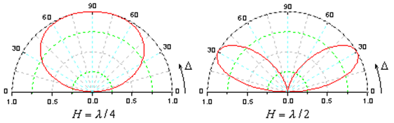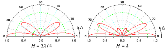 图4-13 水平(左)和垂直(右)半波振子与H/λ的关系