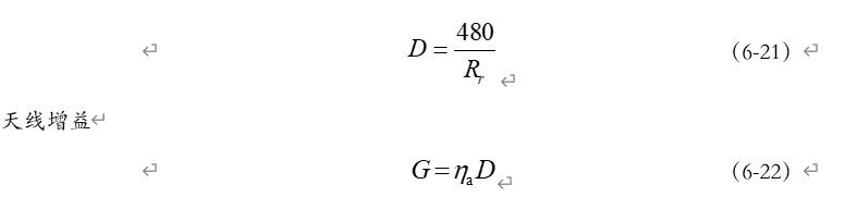 为天线效率。其中RL表示损耗电阻,包括天线导线热损耗、绝缘子损耗、地损耗等。一般情况下(H>(0.2-0.25)λ),ηa≈1,此时G≈D。