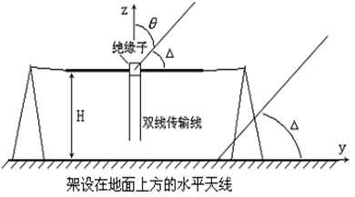 (1)近地水平对称振子天线沿地面方向辐射场为0,这是由于水平天线与其镜像天线的电流反相,在地面方向波程差为0,辐射场相互抵消。