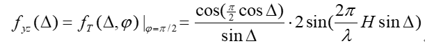 yz平面内(φ=π/2)的方向图函数,因θ=π/2-Δ,则