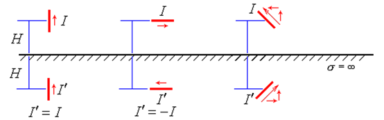 图4-3 元天线(电流元)镜像电流的分布