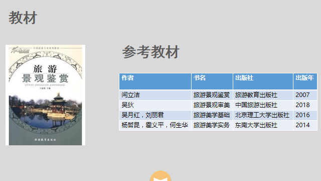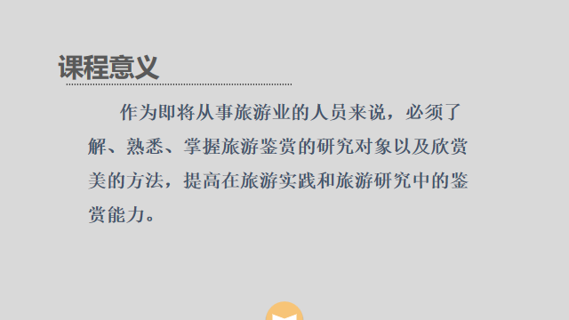 1.了解旅游景观鉴赏的旅游美学、旅游心理学方面的原理