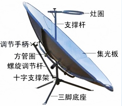 设计师巧妙地采用一种镀铬的条形物,制成了十分轻巧的伞面。雨天用它挡雨,其遮雨功能同平常的伞毫无两样。如果想用它来加热,只需在阳光下把伞倒放,并使伞柄指向太阳,这时伞的聚焦点便能产生500度的高温,再配上一个支架,用来放置壶或锅,便可烧水、做饭或煮菜。