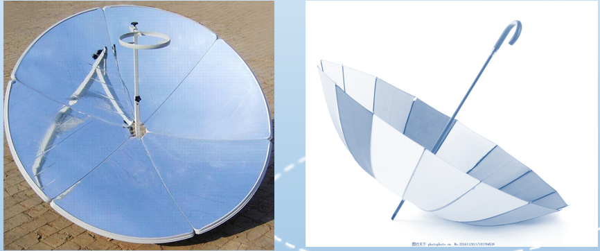 下面看下奇妙的太阳能两用伞,太阳能炊具很像倒放着的雨伞,能不能把两者合为一体?