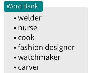 职业 Career | Welder,nurse,cook,fashion designer,watchmaker,hairdresser,carver |