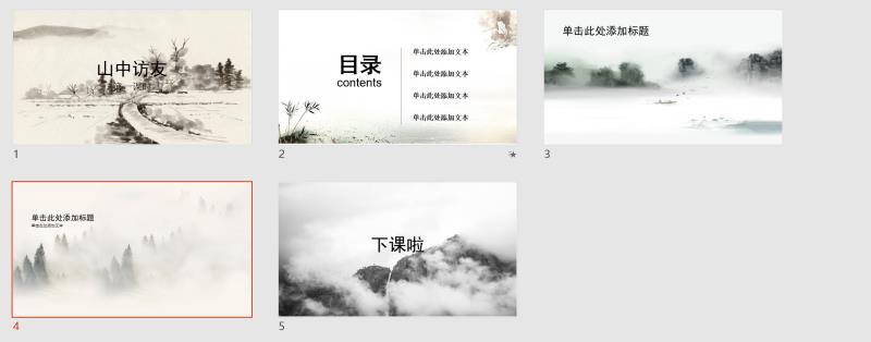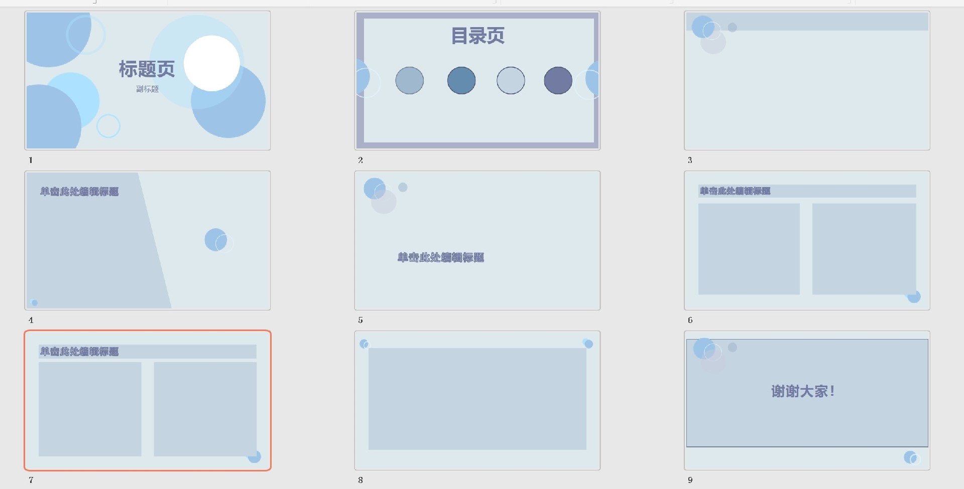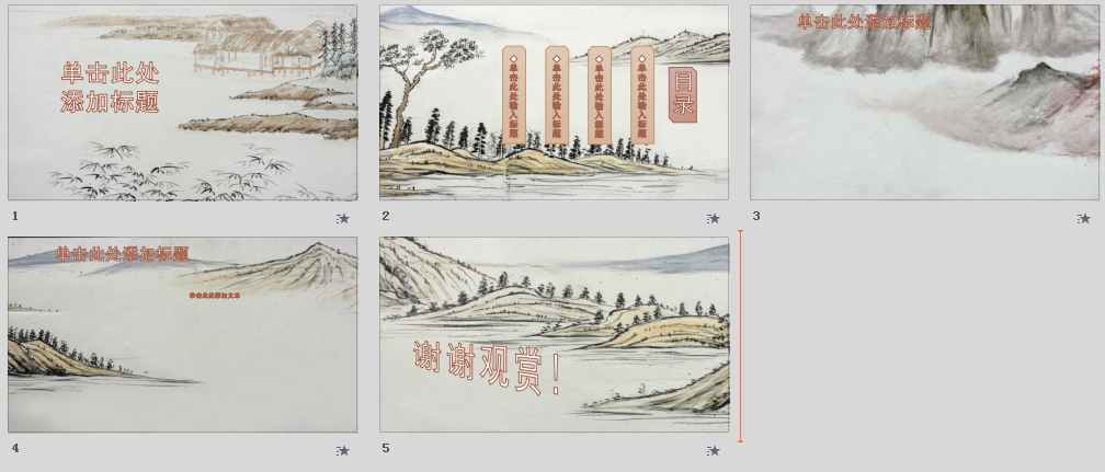 一套母版最少应含封面、目录、引导、内容和结束页设计
