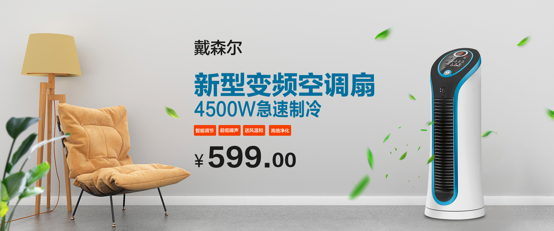 制作要点:使用椭圆工具和高斯模糊滤镜命令为空调添加阴影效果,使用色阶命令调整图片的颜色,使用圆角矩形工具、横排文字工具和字符控制面板添加产品品牌及相关功能介绍。