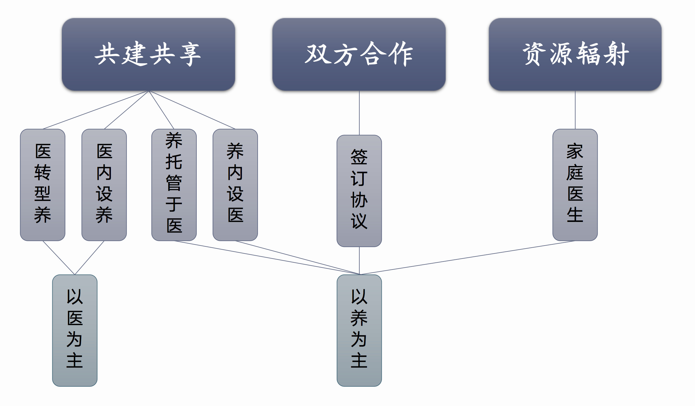 医养结合有三大主要发展模式:共建共享、双方合作、资源辐射。