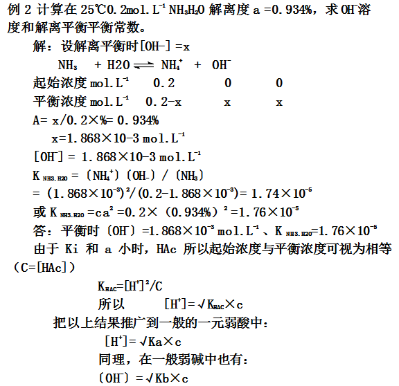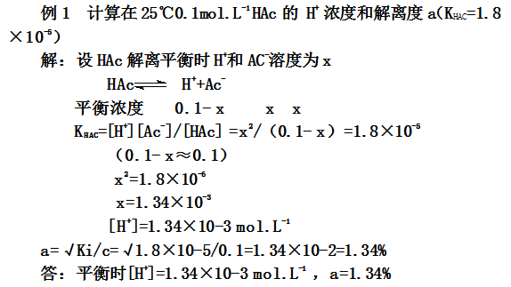 上述公式,只适用对解离度和解离平衡常数值较小的弱电解质的近似计算,一般以C/Ki≥500作为近似计算的条件,否则应精确计算。