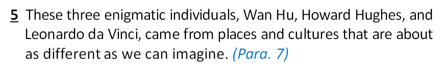 The three enigmatic individuals, Wan Hu, Howard Hughes, and Leonardo da Vinci, cannot be more different in terms of their living places and cultures.