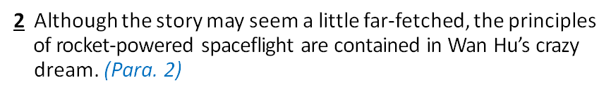 2 The story goes that Wan Hu built the first spaceship: a chair with 47 powerful gunpowder rockets and two kites attached to it. On the day of the launch, each rocket was lit by a different servant carrying a torch. The servants then moved back and waited. An earth-shattering explosion followed: Wan Hu and his primitive spaceship had disappeared completely. Although the story may seem a littlefar-fetched, the principles of rocket-powered space flight are contained in WanHu’s crazy dream.