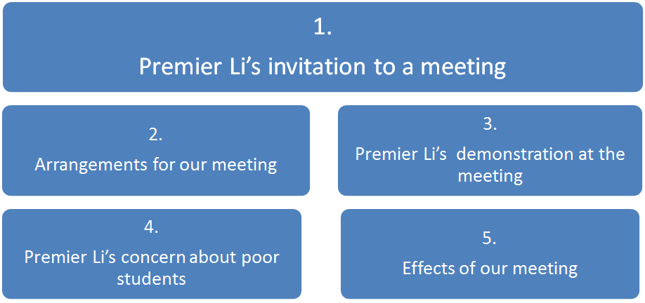 Li, as Premier and Party Secretary of the State Council, has many pressing issues of national and international concern to attend to. (Para. 1)
