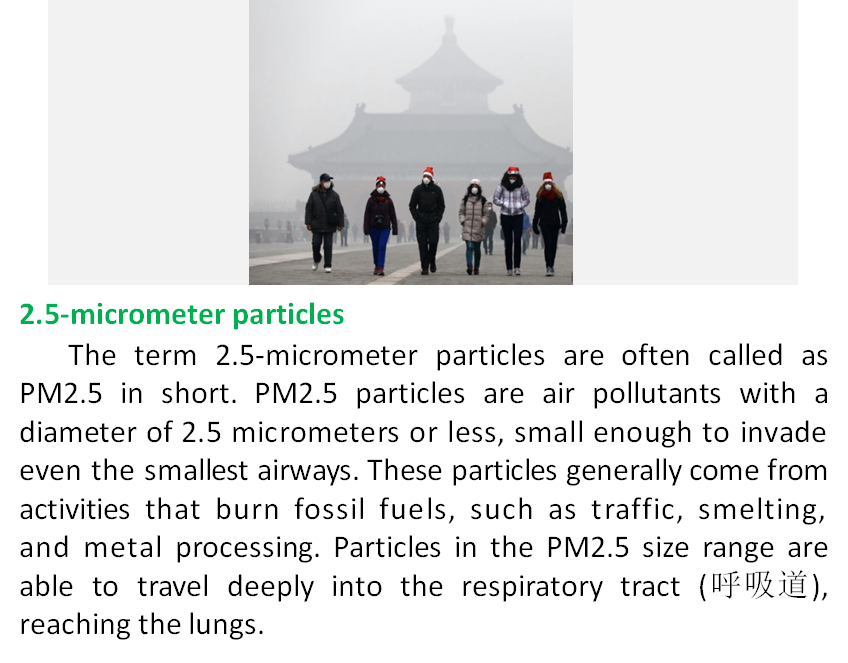 e.g. The Chinese government has declared war on smog by closing heavily polluting factories.