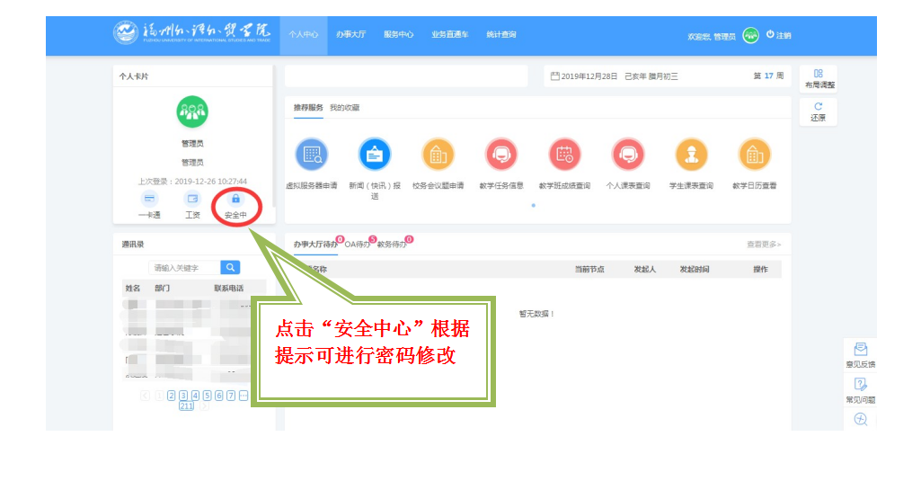 1. 密码修改:从安全中心处修改初始密码