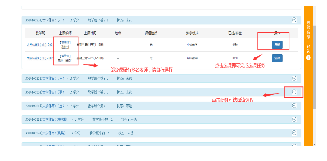 选择相应课程