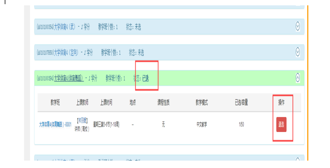 →重新选课课程选错可退选重新选