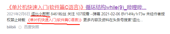 这里推荐“逗比小憨憨”的《单片机快速入门(软件篇C语言)》,内容比较精简,可以快速了解C语言基础,适合没有任何编程基础的同学学习。可以在各大平台搜索相关内容。