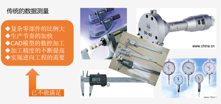 逆向设计所针对的产品,通常都是尺寸比较巨大或非常细小,又或者是表面结构非常复杂、曲面较多。传统的测绘工具,比如像游标卡尺、分度规等等,已经不能满足很多场合对产品数据测量的要求。