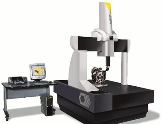 下图是一款桥式三坐标测量仪。工作时,将被测物体放在三坐标机的测量空间内,设计好扫描的路径。之后或通过移动探头获取被测物体上所需测量点的位置坐标,经测量机自带的软件处理,计算出其几何尺寸、形状和位置信息。