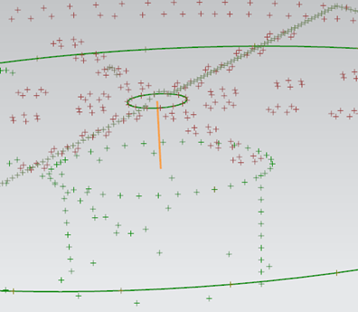 ① 分别提取凳面和顶部突起的轮廓点绘制空间圆。