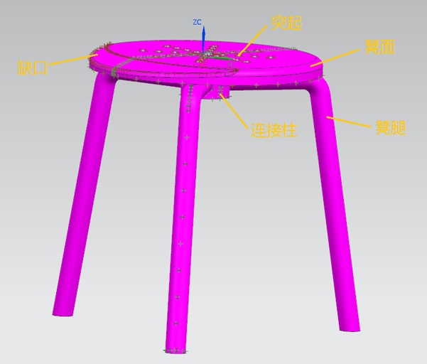 “凳子”点云主要由凳面、缺口、顶面突起、连接柱和凳腿5部分组成。采集的点均位于各个特征的边界轮廓上。