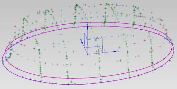 ① 根据飞边位置的点云,取点绘制出竖直面的上、下轮廓边线。