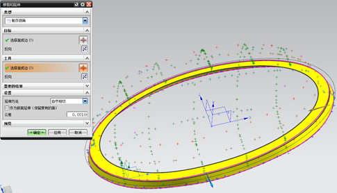 ④ 通过制作拐角命令,实现曲面的修剪和合并。