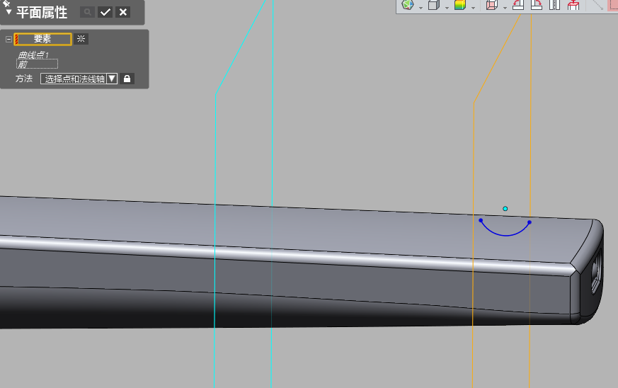 ③ 平行于前视面,并过小凹槽轮廓曲线的圆心创建一个基准面。