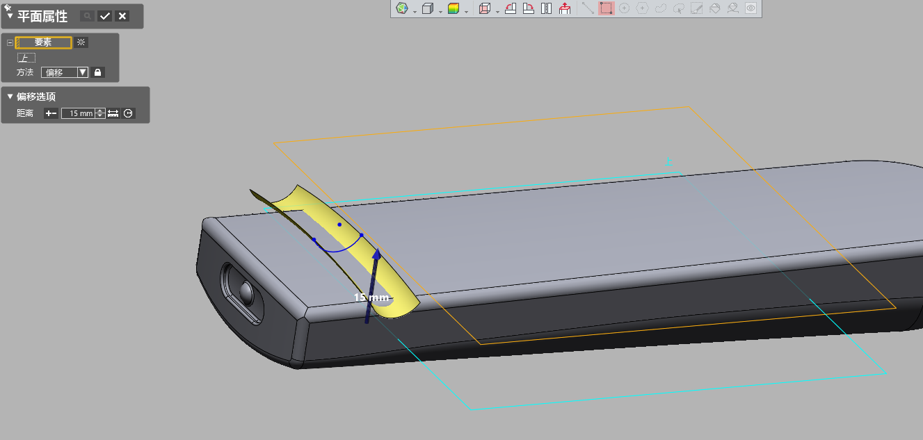 ⑥ 以上视面为基准,往遥控器顶面外侧创建新基准面。