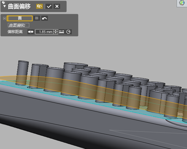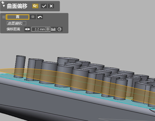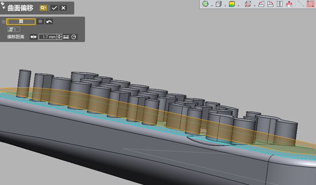 ⑤ 根据按钮顶部的体偏差,本例中分别以1.7、1.85和2.2,创建顶面的偏移面。