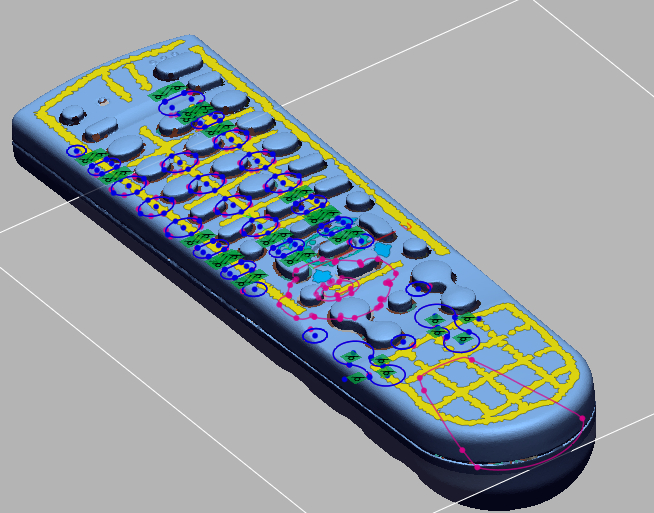 ① 以上视面为草绘面,提取按钮轮廓草图(突起处按钮除外)。