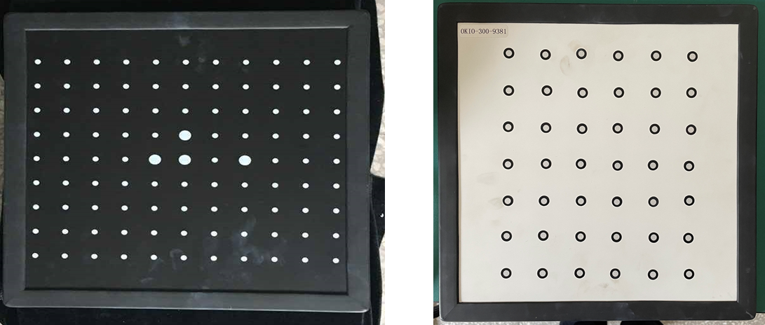 X7的标定板分正反两面。正面为黑底白点,反面则为白底白(反光)点。