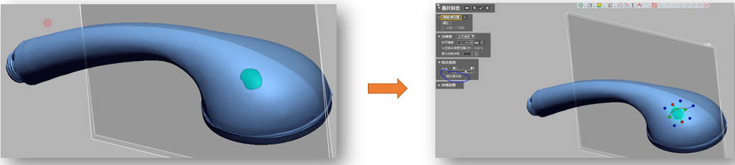 ⑤ 打开体偏差命令,通过色块对比2张曲面的偏差情况,若差距较大则需对基准面2进行微调。