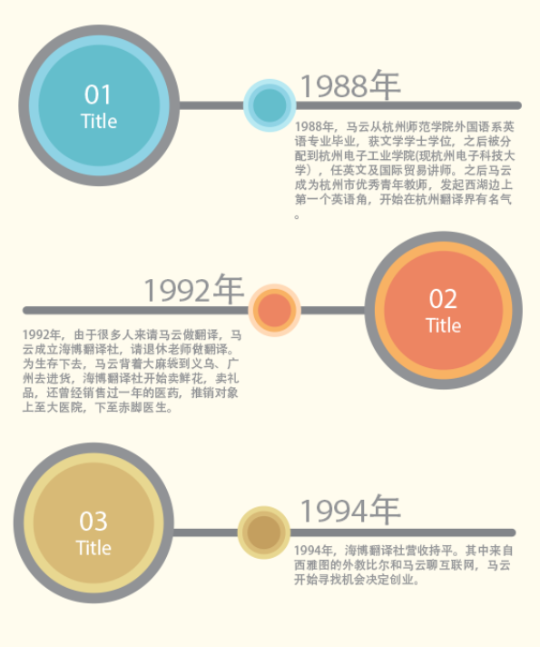 1988年毕业于杭州师范学院外语系,同年担任杭州电子工业学院英文及国际贸易教师,1995年创办中国第一家互联网商业信息发布站“中国黄页”,1998年出任中国国际电子商务中心国富通信息技术发展有限公司总经理,1999年创办阿里巴巴,并担任阿里集团CEO、董事局主席。2013年5月10日,辞任阿里巴巴集团CEO,继续担任阿里集团董事局主席。6月30日,马云当选全球互联网治理联盟理事会联合主席。10月受邀出任英国首相戴维·卡梅伦的特别经济事务顾问。2016年5月8日,马云任中国企业家俱乐部主席。9月21日,联合国秘书长潘基文亲自签发任命书,宣布马云受邀出任联合国贸易和发展会议青年创业和小企业特别顾问。