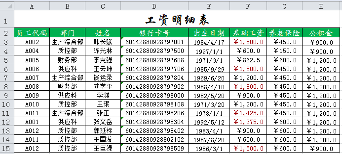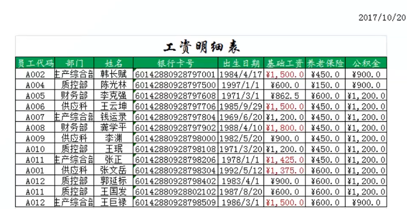 制作一份公司员工的工资明细表。