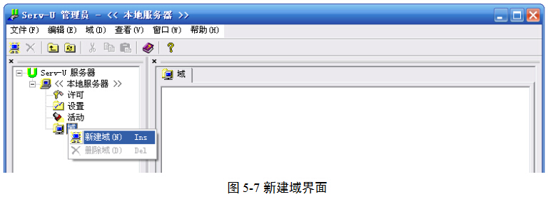 (3)右击“域”,在弹出菜单中单击“新建域”命令,图5-7。