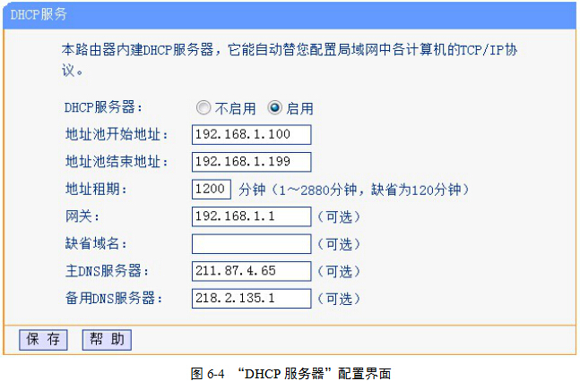 (1)执行导航栏的“DHCP服务器”|“DHCP服务”命令,打开“DHCP服务设置”界面,图6-4。