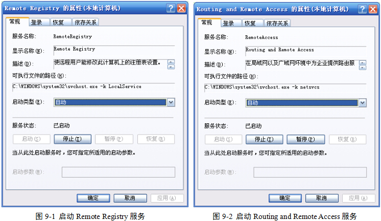 (3)在第2步“服务”集合中,找到远程注册表服务(Remote Registry),将启动类型设置为“自动”,并启动该服务,图9-1。
