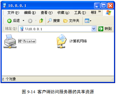 提示:此处能否看到服务器的共享资源,取决于服务器的设置。具体设置,请参考《实验3 局域网文件和打印机共享》的相关内容。