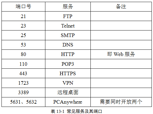 表13-1列举了几个常见的服务及其使用的端口。若这些服务器本身在宽带路由器下面内网中,那么只需要在宽带路由器上做端口映射,这些服务器就可以在外网进行访问。只不过访问时,服务器的IP地址为路由器WAN口的IP地址。