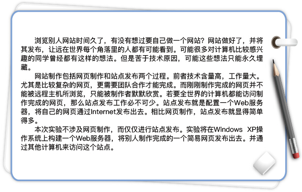 掌握IIS的安装方法,掌握通过IIS来创建Web服务器的基本方法。