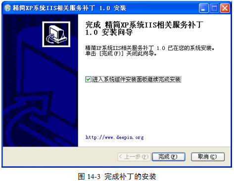 (2)在补丁安装完后,单击“完成”按钮,图14-3。