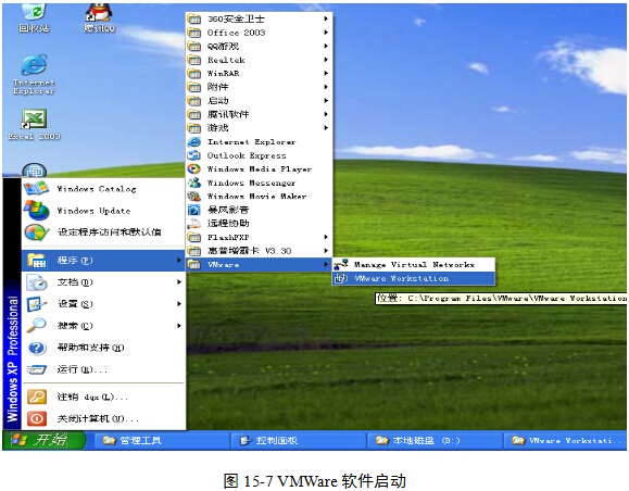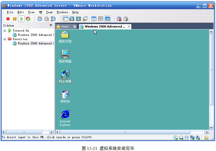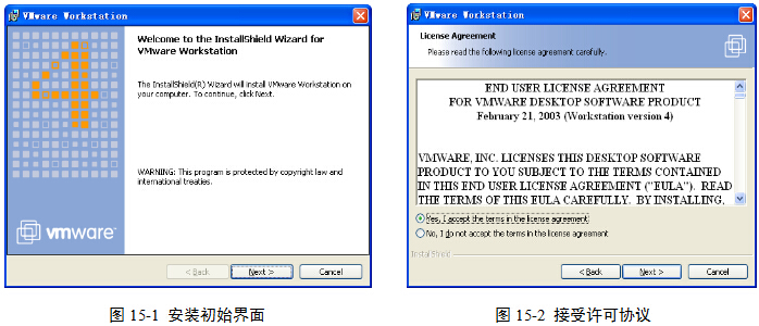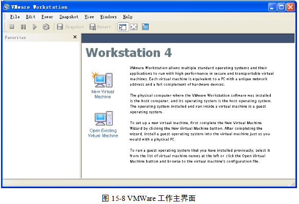 (1)执行“开始”|“程序”| VMWare | VMWare workstation ,启动软件,图15-7。