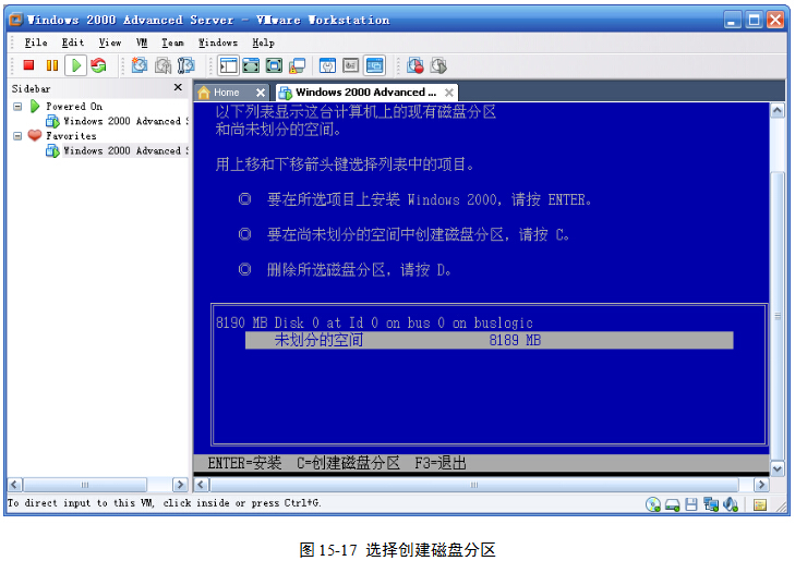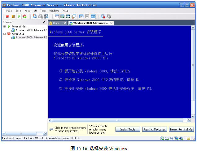 (4)在图15-16界面中,按回车键,表示要求安装Windows 2000。