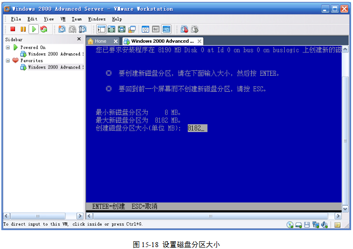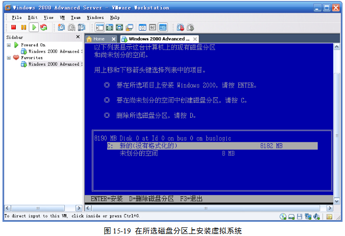 (7)选中创建的磁盘分区,按回车键,就能在刚刚创建的磁盘分区上安装Windows 2000,图15-19。