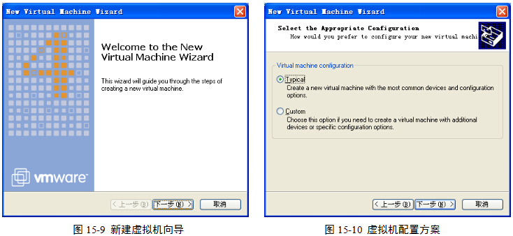 (3)新建虚拟机向导自动启动,图15-9,单击“下一步”按钮。