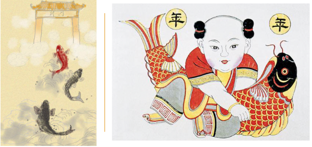 People with great achievements in study or business are often compared to these yu who have turned into dragons. Therefore, carps, a kind of yu, represent achieving prosperity through hard work.Yu is a word with the double meaning in China.